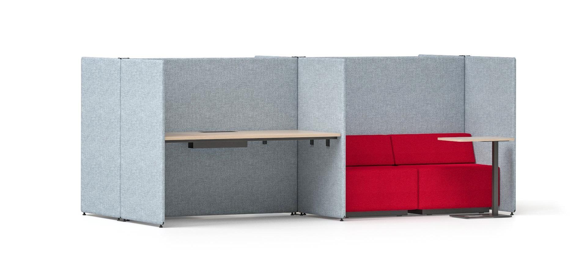 Los asientos tipo lounge son ideales para crear una “habitación dentro de una habitación” en oficinas de planta abierta. Sirve como espacio de reunión y trabajo donde puede aislarse del ruido ambiental.